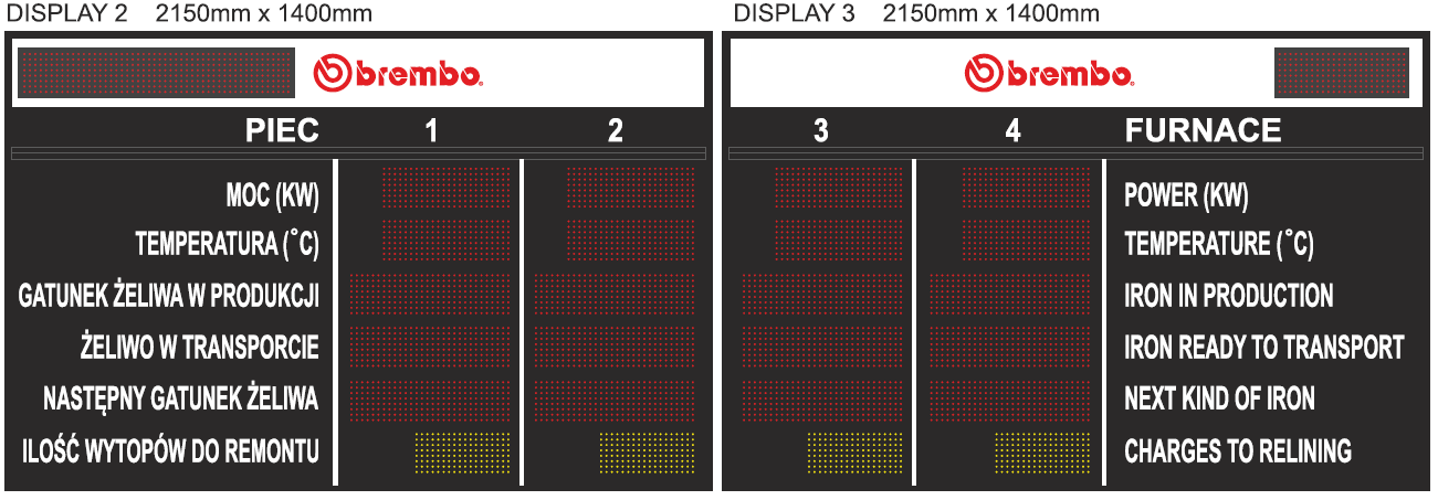 Tablica mieści się na linii produkcyjnej rdzeniarni w hucie żeliwa. Wyświetla ona najważniejsze informacje o danym stanowisku w zakładzie...